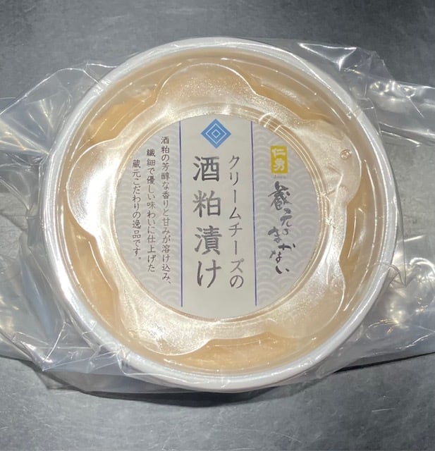 クリームチーズを、仁勇の酒粕を使用した秘伝の漬床に漬け込み、ひとつひとつ手作業で仕上げました。お酒のあてにお召し上がり下さい。